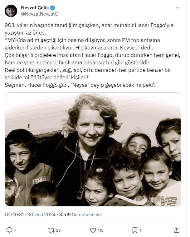 CHP’nin merakla beklenen İzmir adayları dün gece açıklandı. İzmir’de ilçe belediye başkan adayı olarak çıkması beklenen isimlerden birisi de CHP Yoksulluk Dayanışma Ofis Koordinatörü Hacer Foggo idi. Açıklanan İzmir adayları listesinde Foggo’nun isminin olmaması ise halkta büyük hayal kırıklığı yaratmış gibi görünüyor.