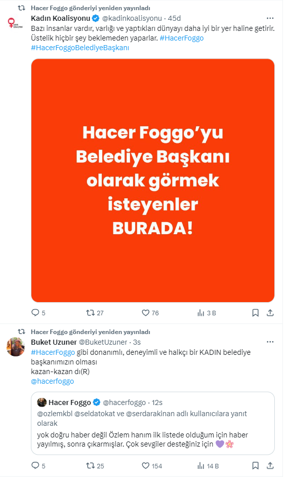 Derin Yoksulluk Ağı kurucusu ve eski CHP Yoksulluk Dayanışma Ofisi Koordinatörü Hacer Foggo, CHP İzmir Konak Belediye Başkanlığı için aday adayı olmuştu.