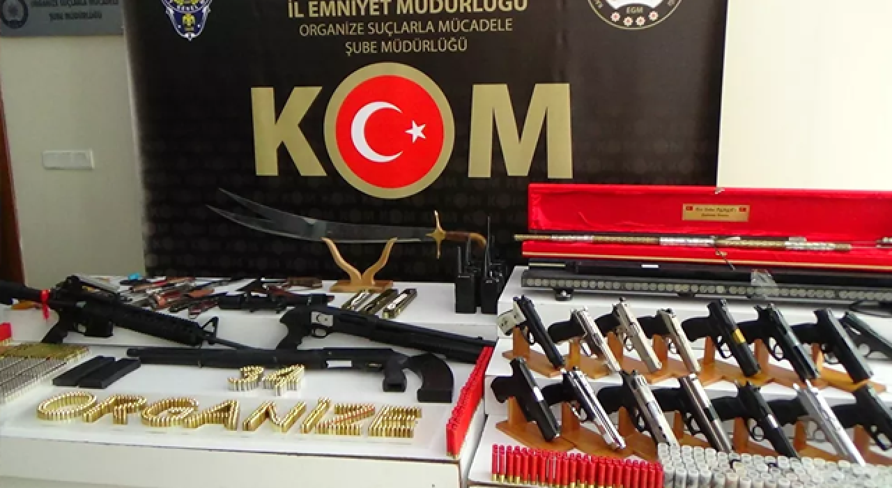 İstanbul Organize Suçlarla Mücadele Şube Müdürlüğü ekiplerince 9 Nisan’da İstanbul, Ankara, Hatay, Konya, Sakarya, Trabzon ve Kocaeli illerinde gerçekleştirilen operasyonlarda ele geçirilen 4’ü kurusıkı olmak üzere 20 tabanca, 9 şarjör, 3 av tüfeği, kılıç ve bıçaklardan oluşan delici ve kesici 54 alet, 2 balistik yelek, çeşitli çapta bin 270 mermi, 332 kartuş, 8 polis telsizi ve bir adet uzun namlulu silah dürbünü ile birlikte çok sayıda çek-senet sergisi yapıldı.
