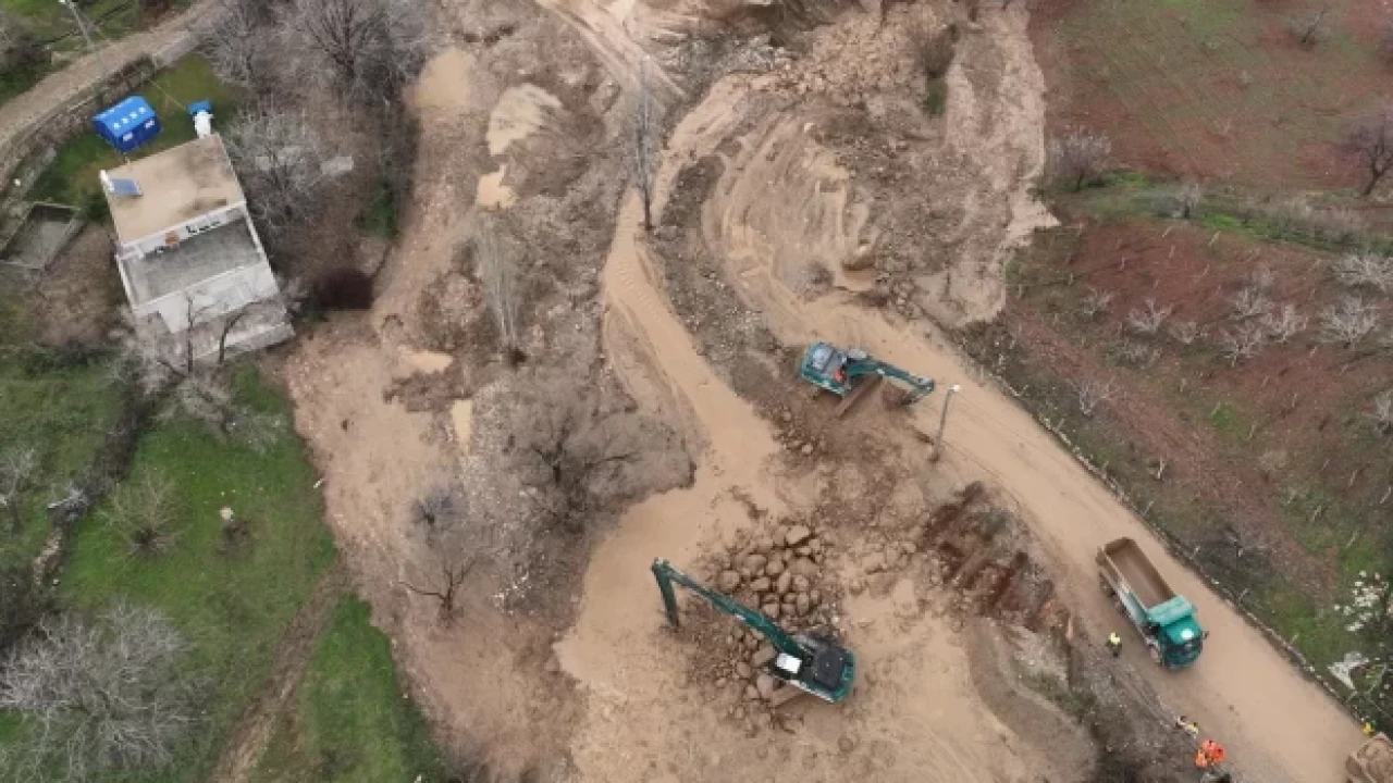 Depremin vurduğu Adıyaman'ın Tut ilçesinde salı gecesi başlayan sağanak yağış sırasında Ömerovası Deresi taştı.