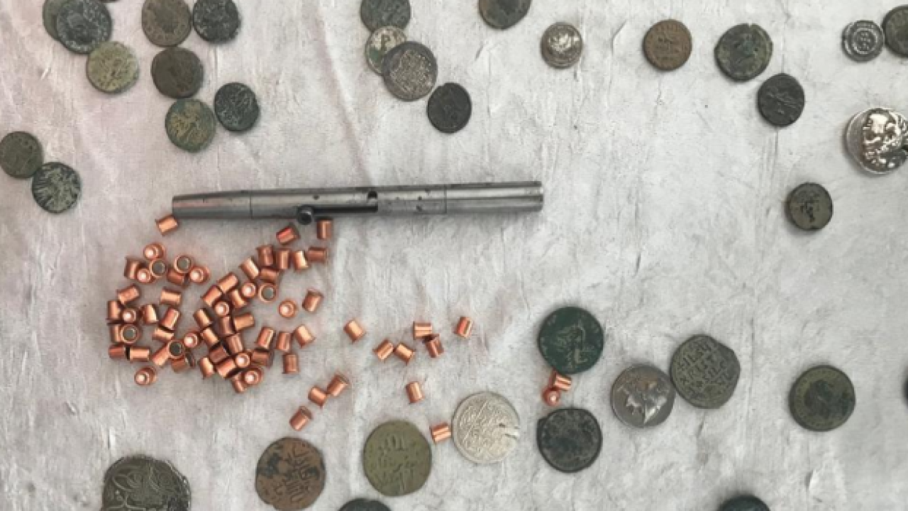 Talas ve Melikgazi ilçelerinde 3 adrese eş zamanlı düzenlenen operasyonda, evlerden birinde buzdolabında, tarihi eser olduğu değerlendirilen Roma ve Bizans dönemlerine ait 688 sikke ile kalem tabanca ve tabancaya ait 71 mermi ele geçirildi.