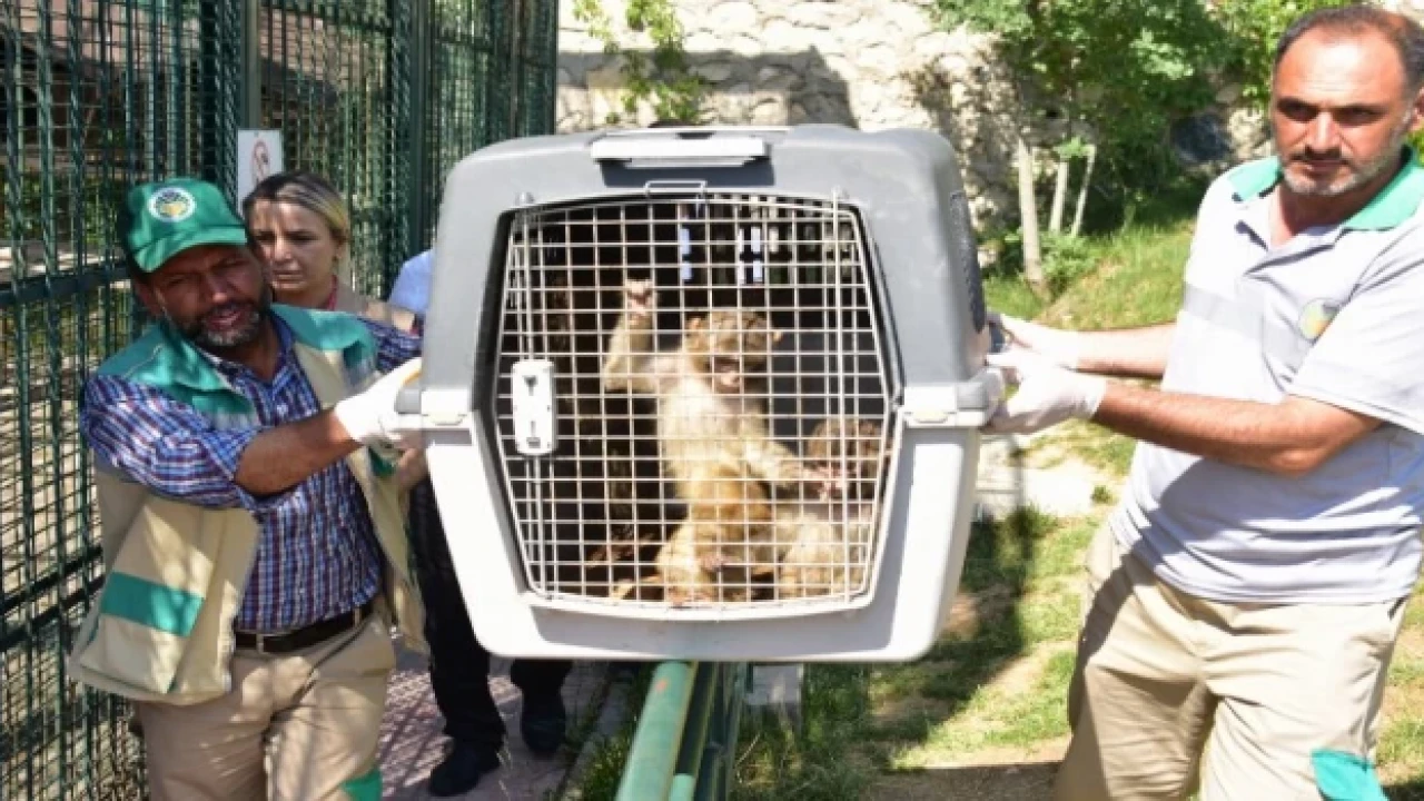 Gürbulak Sınır Kapısı'nda yakalanan üç makak maymunu Malatya'da hayvanat bahçesine getirildi.