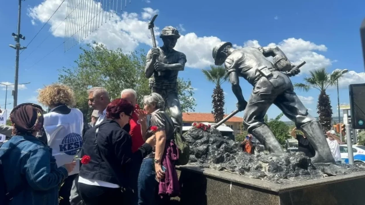 Açıklamanın ardından Soma Maden Anıtı'na karanfil bırakıldı.