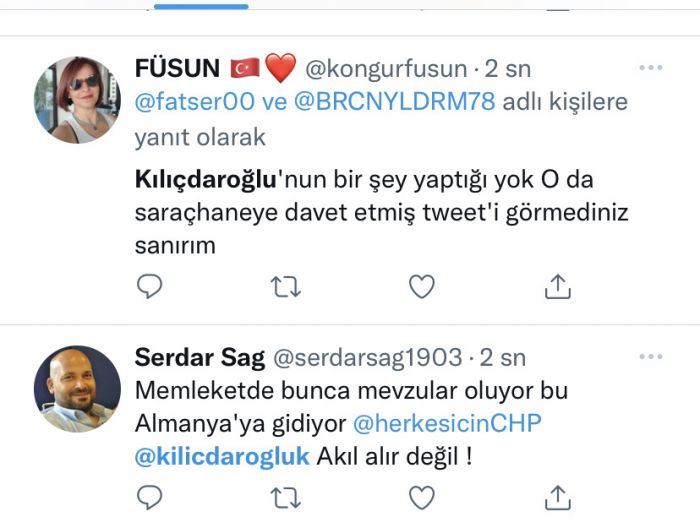 Ana temasını endüstri dönüşümünün oluşturacağı Almanya programında danışman Rifkin'in eski Almanya Başbakanı Angela Merkel ile başlattığı endüstriyel ve yeşil enerji dönüşüm hamlelerini yerinde gözlemleyecek olan Kılıçdaroğlu'nun seyahat tarihini böylesine kritik bir gün olarak seçmesini eleştiren çok sayıda kullanıcı özellikle Twitter üzerinden eleştiri yorumlarında bulundu. İşte o yorumlardan bazıları;