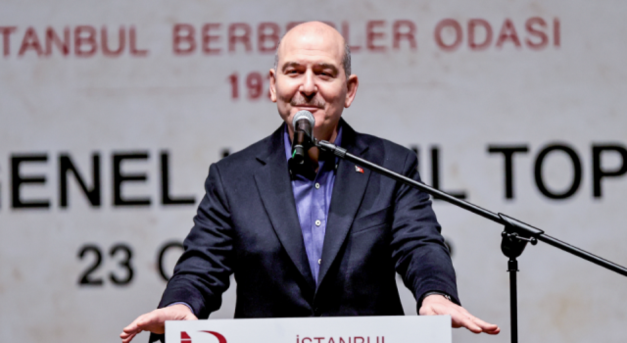 İçişleri Bakanı Süleyman Soylu, İstanbul Berberler Odası Olağan Genel Kurulu'nda konuştu.