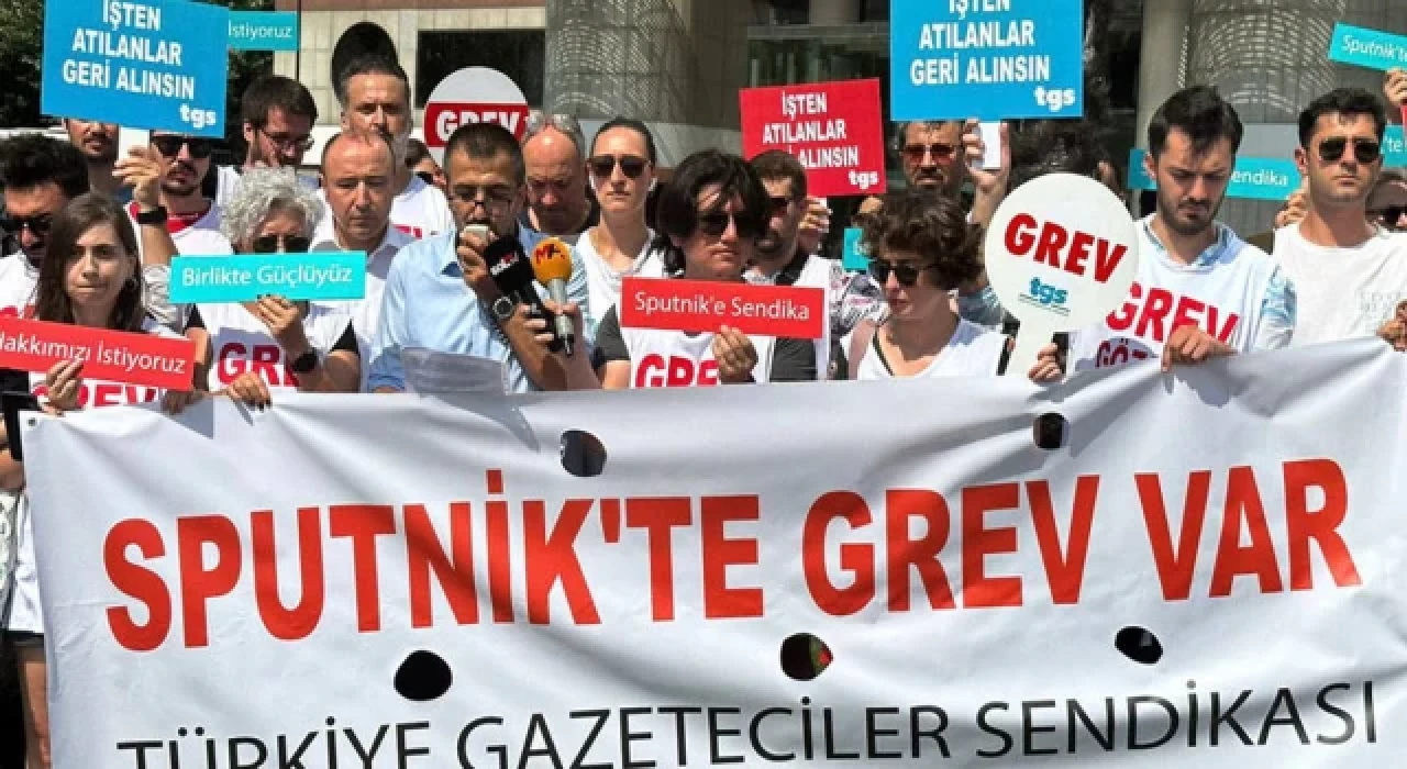 TGS'den yapılan açıklamada, grev pankartlarının Sputnik ofislerinin önüne asıldığı belirtildi.