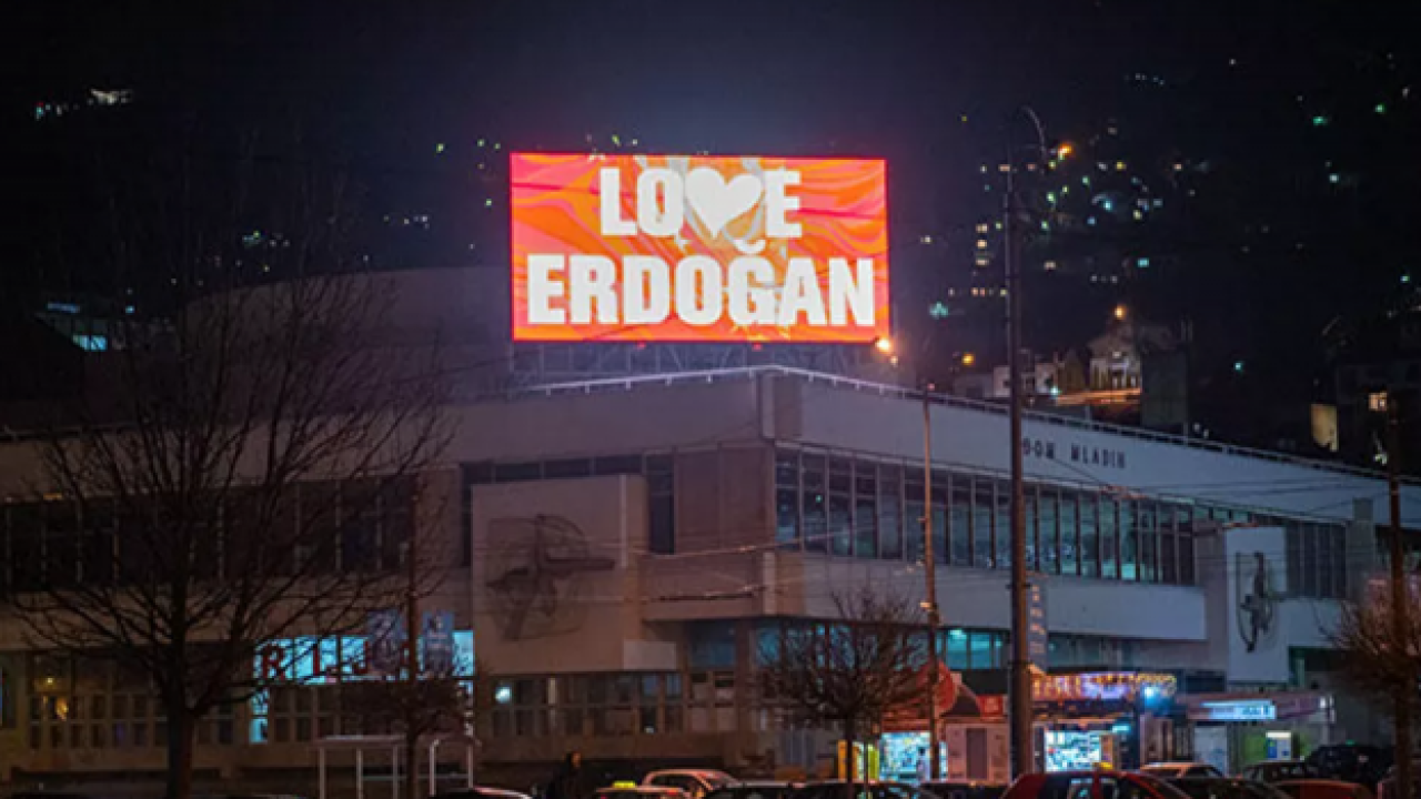 Bosna Hersek'in başkenti Saraybosna'nın farklı noktalarında bulunan Dom Mladih ve Sara alışveriş merkezinin reklam panolarında, ABD New York'ta bulunan Times Meydanı'nda yayınlanan 'Stop Erdogan' reklamına tepki olarak 'Love Erdoğan' ilanına yer verildi.