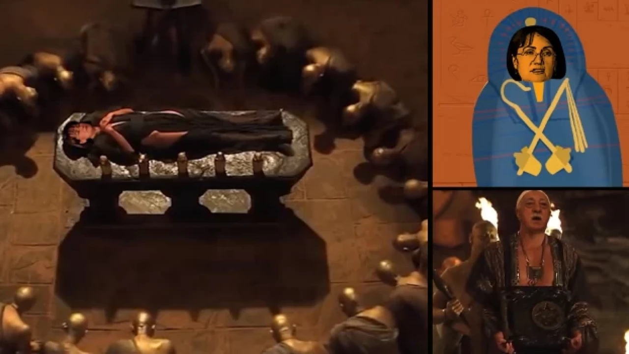 Soylu, Akşener’in yüzünün mumyaya kopyalandığı videoyu, “Dinazorlara aslında birer ’mumya’ olduklarını hatırlatmışlar” notuyla paylaştı