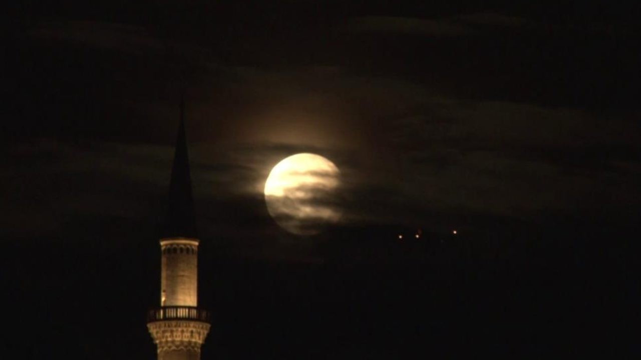 Süleymaniye Camii ve Rüstem Paşa Camii minarelerinin arasında görüntülenen "Süper Kanlı Ay Tutulması" görenleri kendine hayran bıraktı. Saat 05.15’te başlayan ay tutulması saat 06.15’e kadar sürdü. Normalden yüzde 14 daha büyük görülen Süper Ay, dünyanın gölgesinde kalarak kısmı ay tutulması oluşturdu.