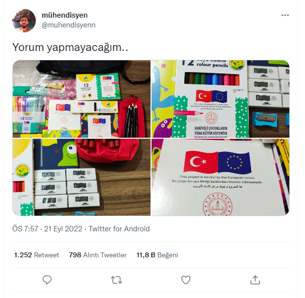 Kullanıcılar tarafından belirtilen ortak düşünce; Türk çocuklarının kırtasiye malzemelerini zar zor alırken, Suriyelilerin ise ücretsiz bir şekilde temin edebilmesiydi.