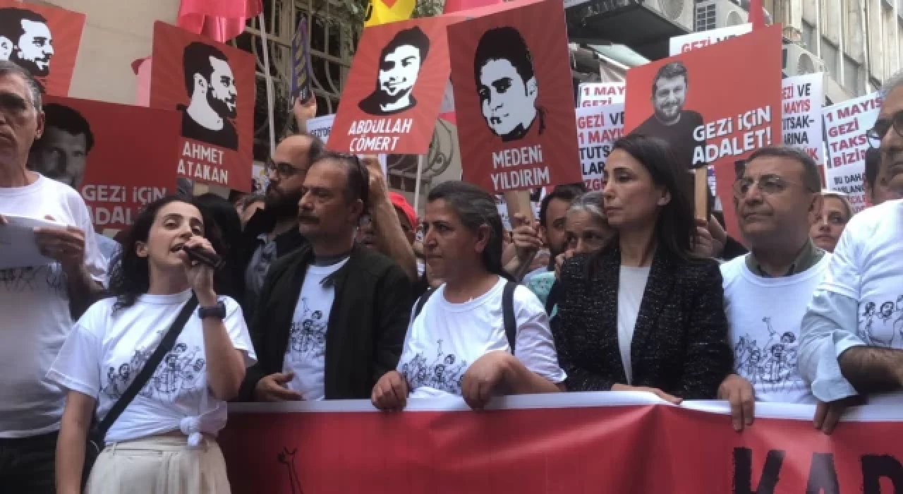 "Bugün ulaşımı durdurarak bizlerin buraya gelmesini engellemeye çalışıyorlar. 1 Mayıs'ta Taksim meydanına çıkmak isteyenlerin önünü kesiyorlar. Ne Taksim Meydanı'na çıkmak istemek, ne 1 Mayıs'ı kutlamak istemek, ne Gezi'yi anmak istemek, ne haklarımızın peşinde koşmak, bunu talep etmek suç değildir. Suç bunu engellemektir. Bundan tam 11 yıl önce olduğu gibi bugün de her yer Taksim, her yer direniş. Gezi'yi yargılayamazsınız"