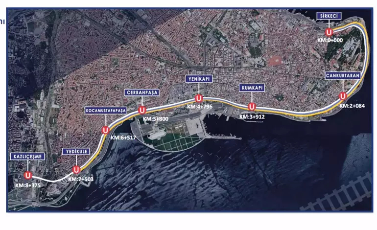 7,3 kilometrelik hat, Sirkeci’den Yedikule’ye kadar uzanacak. Tarihi hat üstünde 8 durak olacak.