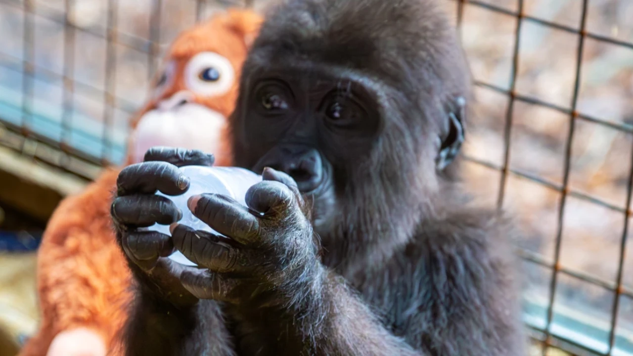 Paylaşımda ayrıca, goril yavrusunun yeni fotoğrafına da yer verildi. Yavru goril, Ticaret Bakanlığı'na bağlı Gümrükler Muhafaza ekiplerinin yaptığı kontrolde, evrakları olmadan Türkiye'den transit geçirilmek istenirken yakalanmıştı.