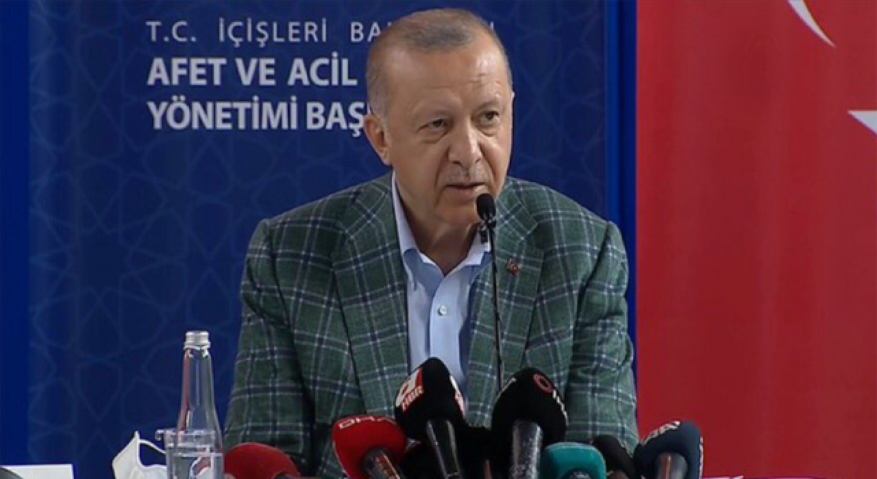 Erdoğan, yangın nedeniyle afet bölgesi ilan edilen yerlerde faizsiz esnaf kredisi verileceğini duyururken, "KOSGEB acil desteği verilecek, 1 ay içerisinde evlerin inşaatına başlanacak" ifadesini kullandı.