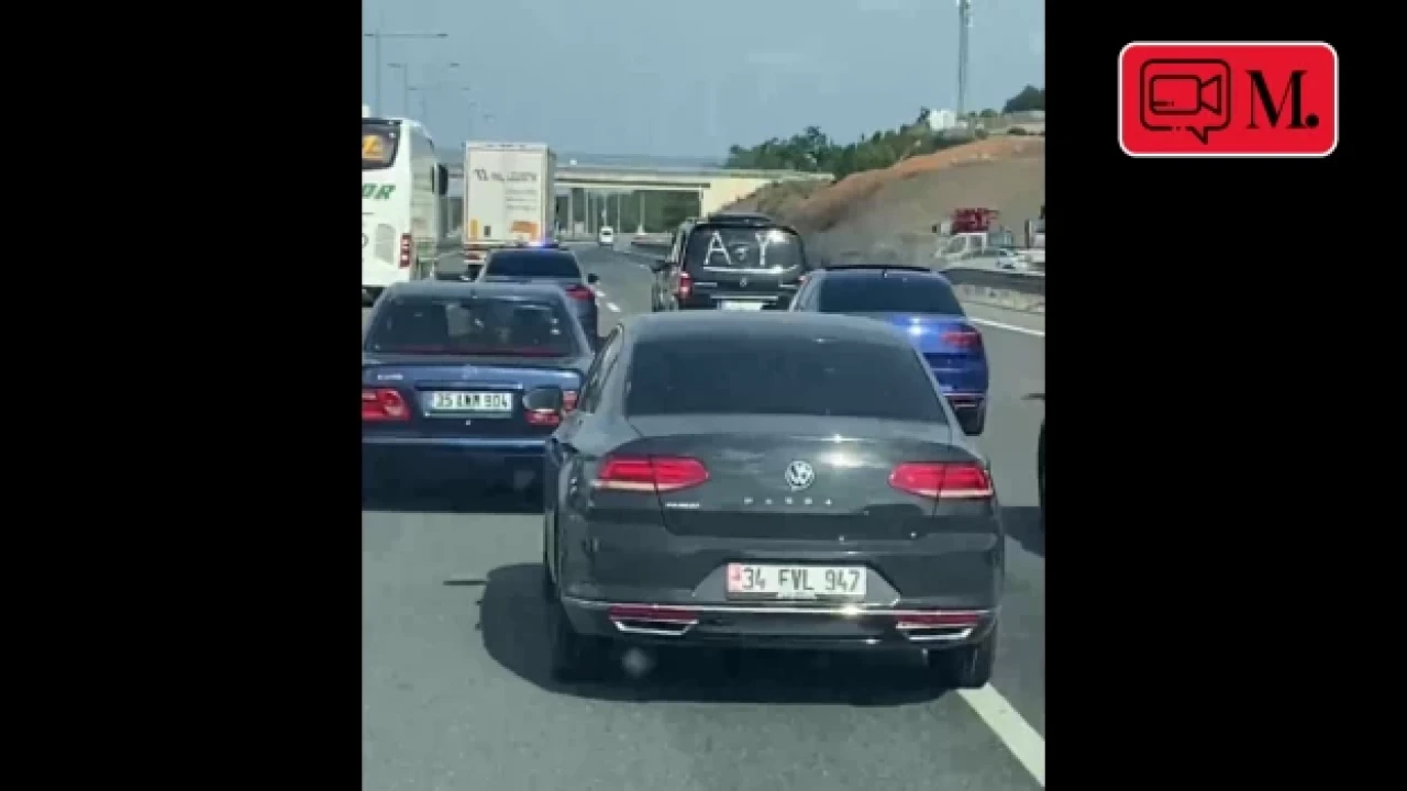 Acil durumlar veya öncelikli görevler için özel olarak tasarlanmış olan, Çakarlı araçlarla trafiğe çıkan sürücülerin 3 şeridi de kapatarak konvay yaptıkları anlar bir yolcunun kameralarına yansıdı.