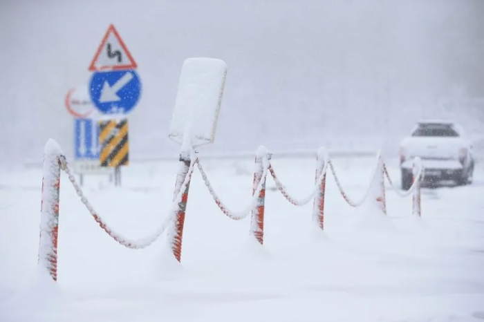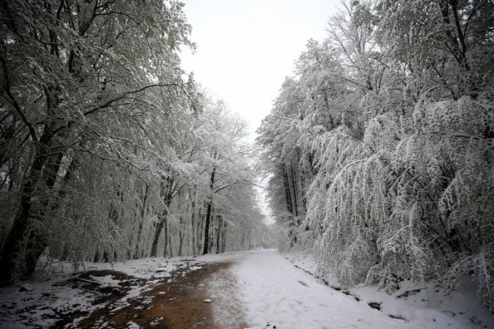 Bölgede çiçek açan ağaçların üzerlerinde kar birikintileri oluştu.