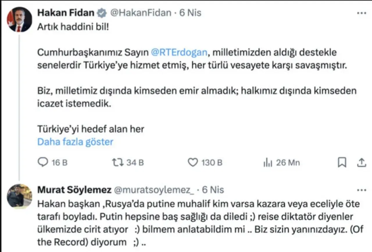 Söylemez, 6 Nisan'da Bakan Fidan’ın Özgür Özel için kullandığı “Artık haddini bil” ifadesinin altına yaptığı yorumda şu ifadeleri kullandı: