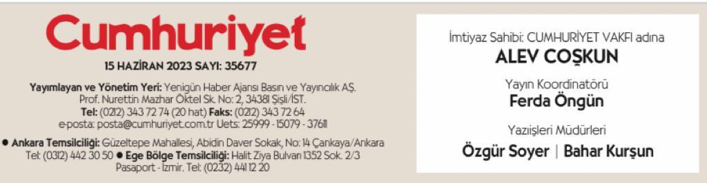 Mollaveisoğlu bugün gazetenin künyesinde yer almadı.
