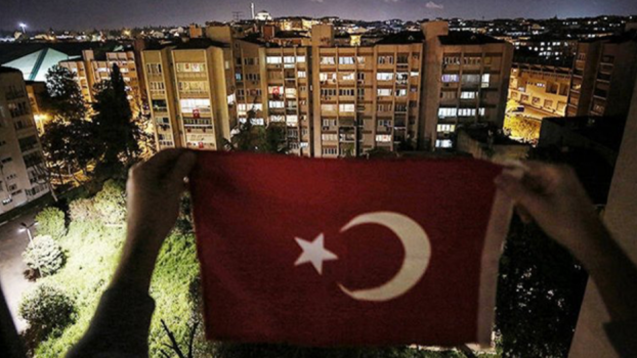 Türkiye genelinde vatandaşlar, saat 19.19'da evlerinin balkon ve pencerelerinden ellerinde Türk bayraklarıyla İstiklal Marşı'nı okudu.