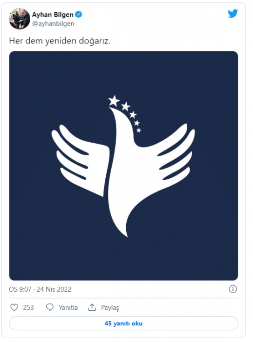 Ayhan Bilgen öncülüğünde kurulan Türkiye’nin Sesi Partisi’nin (SES) yeni logosu belli oldu. Ayhan Bilgen, partinin yeni logosunu “Her dem yeniden doğarız” ifadeleriyle paylaştı.