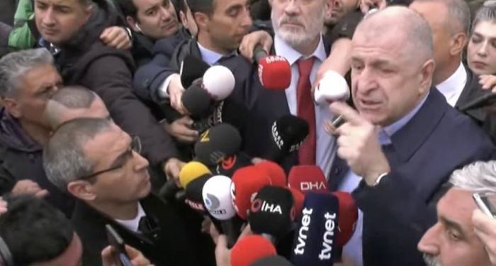 İçişleri Bakanlığı'na yürümesi engellenen Özdağ, Meclis önünde açıklamalarda bulunuyor.