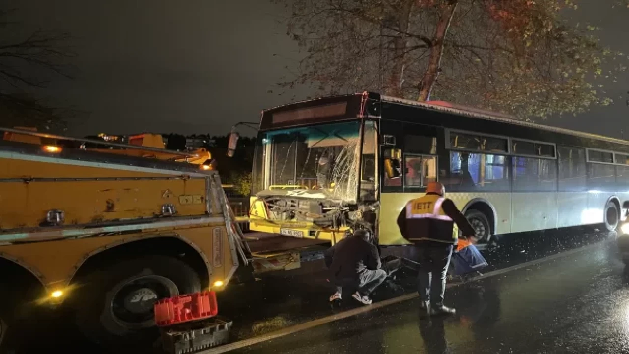 Üsküdar’da yağış sebebiyle kayganlaşan yolda direğe çarpan İETT otobüsü hasar gördü