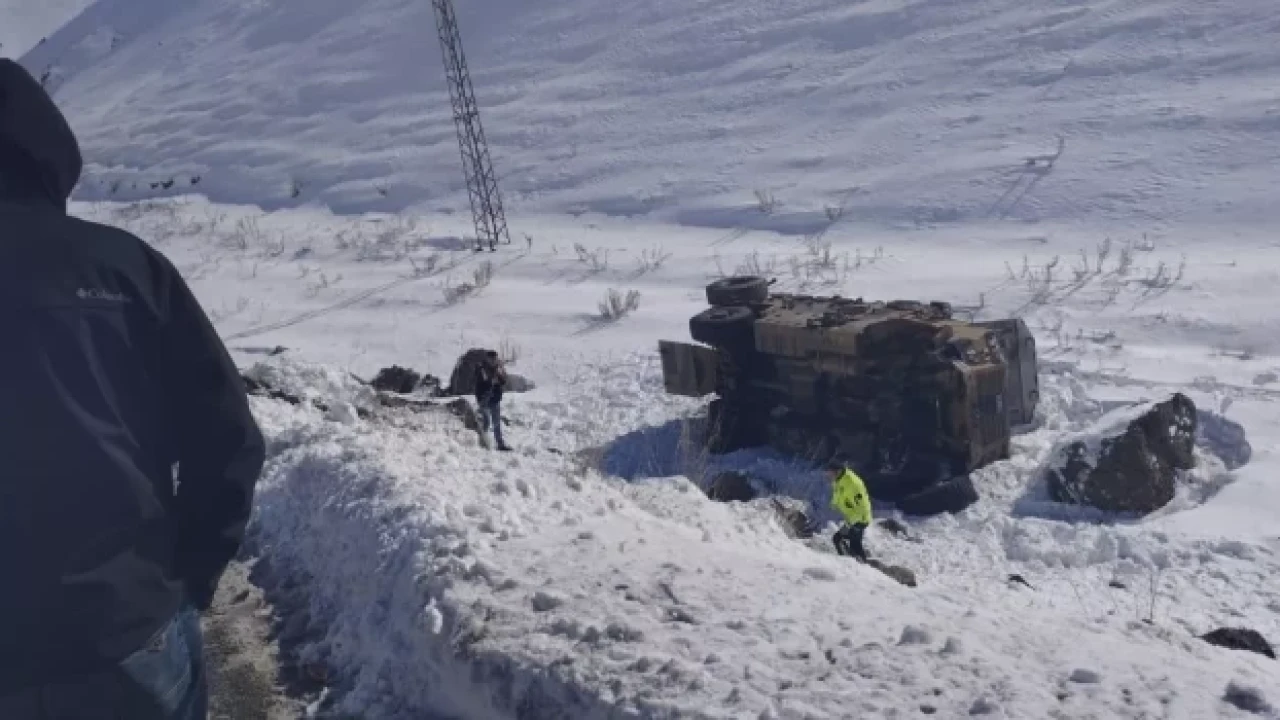 Van’dan Hakkari istikametine gitmekte olan askeri konvoyda bulunan bir zırhlı araç, bilinmeyen bir sebepten dolayı kontrolden çıkarak devrildi.