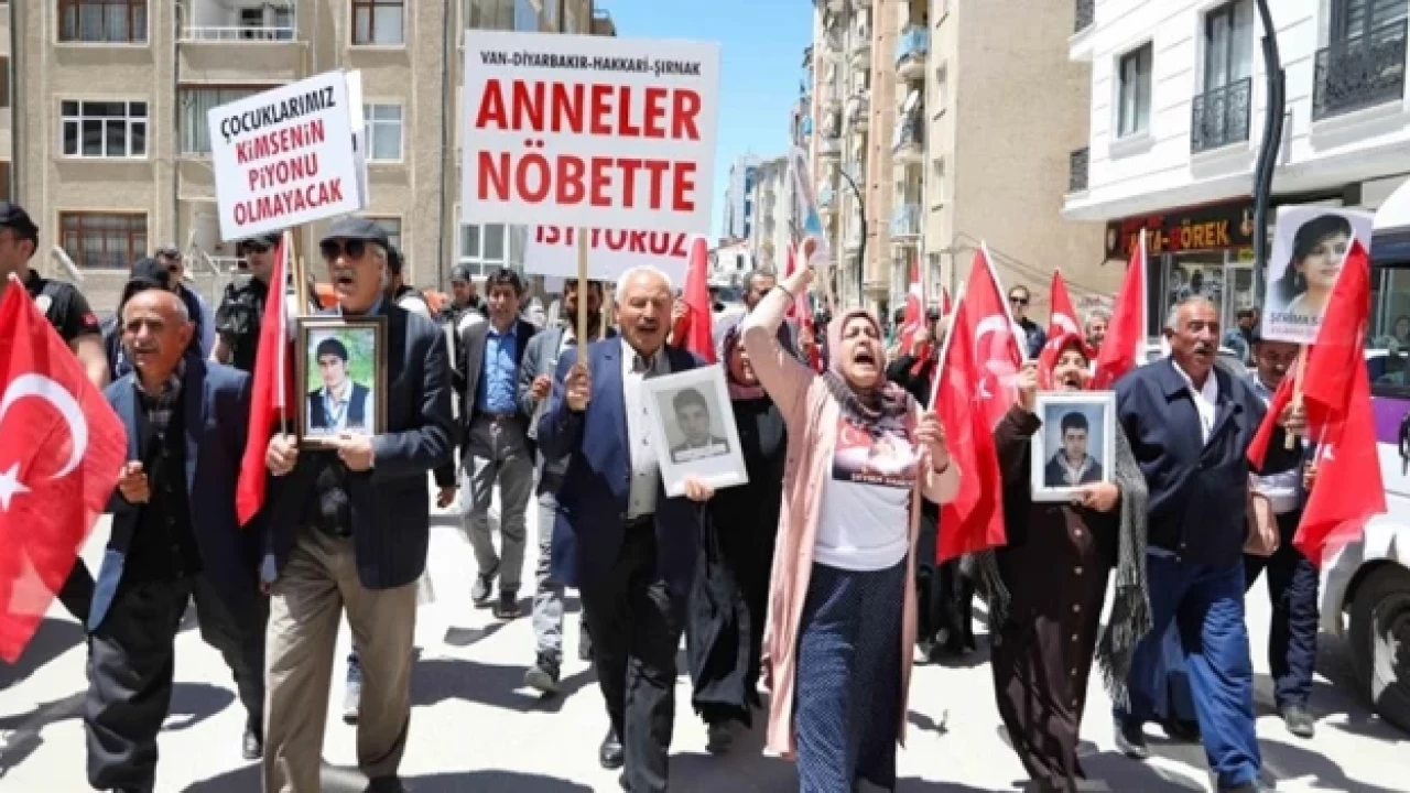 Cumhuriyet Caddesi’nde bir araya gelen aileler, ”Evlat nöbetindeyiz”, ”Artık yeter, yakamızdan düşün”, ”Çocuklarımız kimsenin piyonu olmayacak”, ”Van anneleri evlat nöbetinde” ve ”Çocuklarımızı istiyoruz” yazılı dövizlerle HDP ve terör örgütü PKK aleyhine slogan attı.
