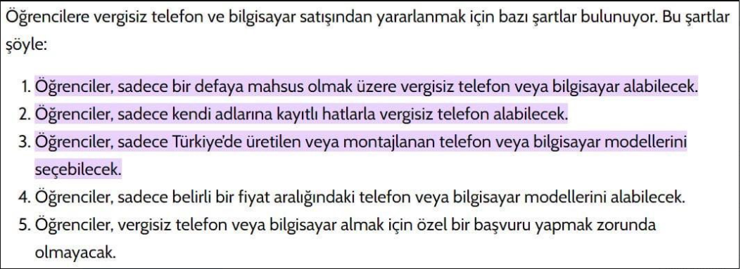Öğrenciler, sadece ya telefon ya da bilgisayar alabilecekler. Sadece Türkiye’de üretilen ya da montajlanan telefon ve bilgisayar alabilecekler.