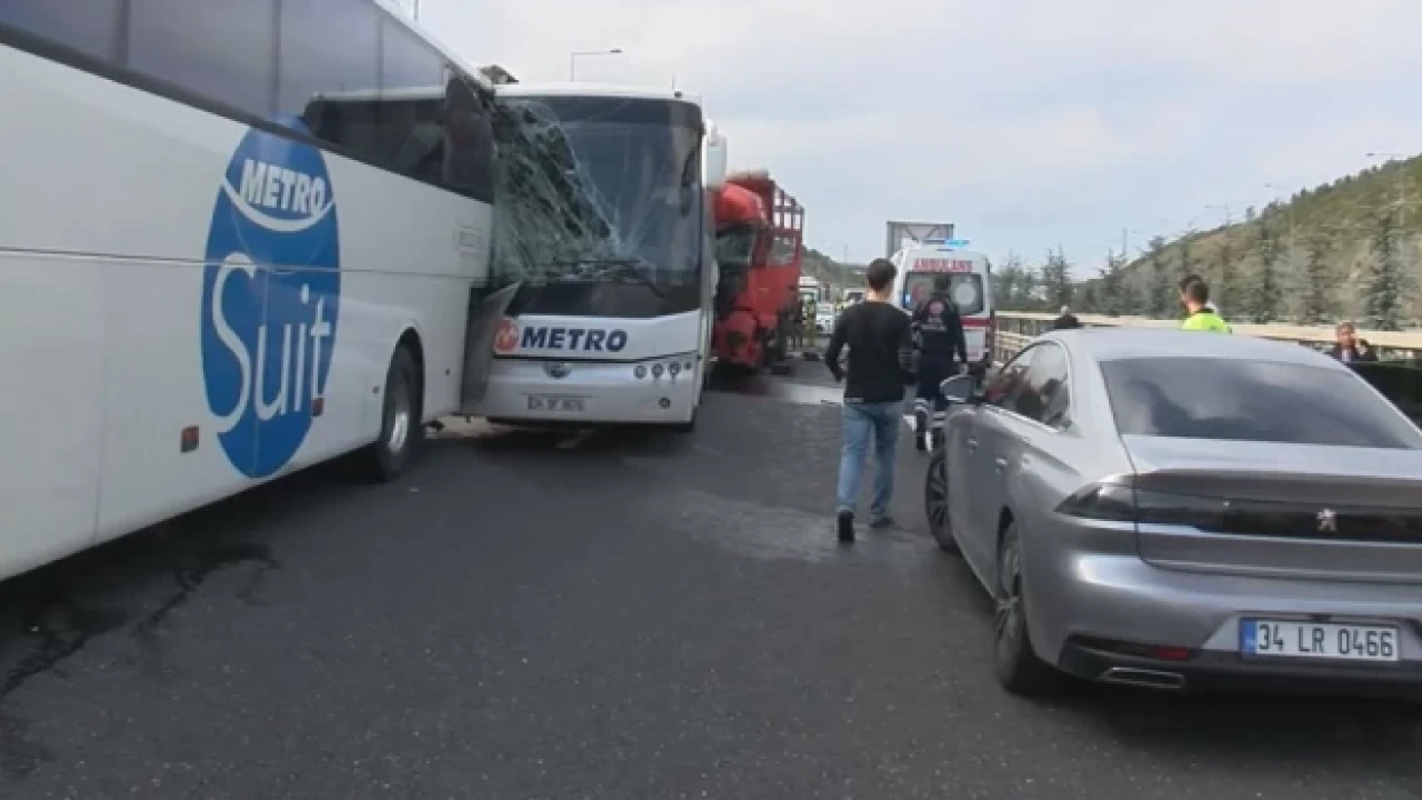 Sarıyer, Yavuz Sultan Selim Köprüsü girişi Ankara istikametinde iki yolcu otobüsü, bir kamyon ve bir hafif ticari aracın karıştığı zincirleme kaza meydana geldi.