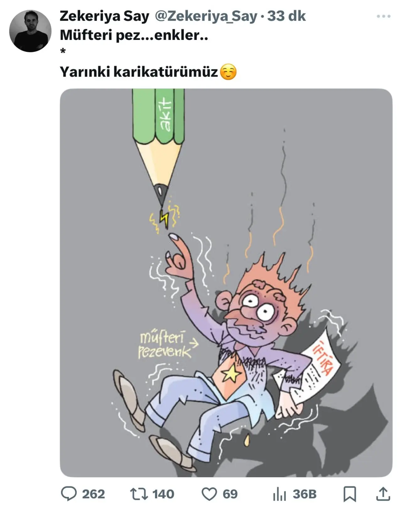 Say'ın sosyal medyadaki çirkin paylaşımları bununla sınırla kalmadı. Yarınki karikatürümüz şeklinde paylaştığı görsel de halkın tepkisine neden oldu.