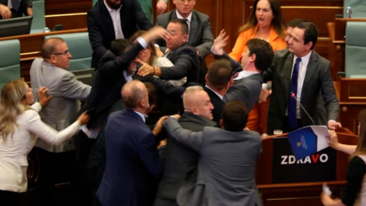 Muhalif. GÜNDEM Yer Kosova: Milletvekilleri birbirine girdi, Başbakan’a su atıldı