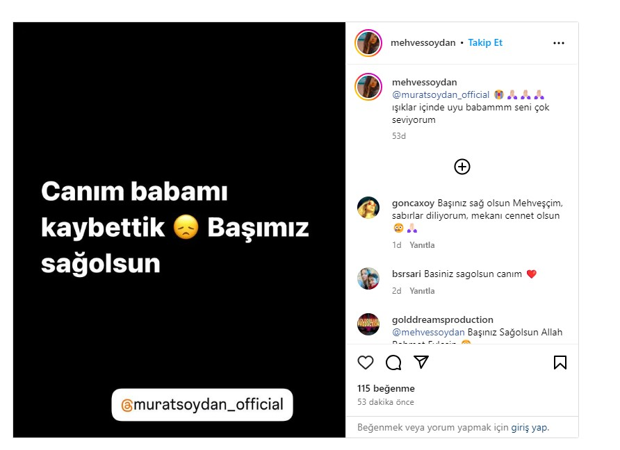 Soydan'ın ölüm haberini kızı Mehveş Soydan duyurdu.