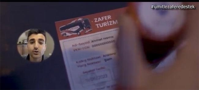 Videonun son kısmında ise Nagihan Alçı ve Abdurrahman Uzun adına da bir bilet yazıldığı görüldü. Söz konusu bilette otobüsün kalkış noktası Ankara ve varış noktası Suriye’nin başkenti Şam olarak gösterildi.