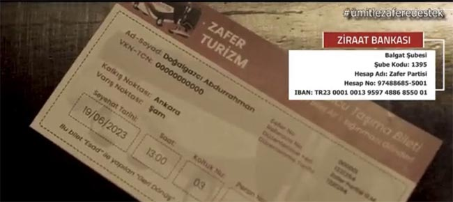Söz konusu paylaşımda “Büyük Türk Milleti, Zafer Partisi'nin, Türk Milleti'nin kurtuluşu için reçetesi hazır. Bize bağışlarınızla destek olun, hep beraber ülkemizi bu kötü kabustan kurtaralım. #ümitlezaferedestek” ifadeleri kullanıldı ve Partinin Ziraat Bankasına ait IBAN’ numarası paylaşıldı.