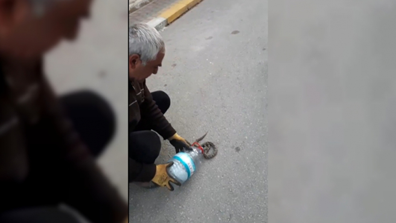 Zehirli engerek yılanı olduğu öğrenilen yılanı önce 30 santimlik bir çubukla yoklayıp sonra su bidonuna sokmaya çalıştılar. Yılanın kafasına doğru bidonun ağzını yaklaştıran mahalle sakini başarılı olamayınca bir başkası yılanı kuyruğundan yakalayıp bidona soktu. Yılandan önce korkan çocuklar daha sonra şişede sevdi. Yılan bir süre sonra doğaya tekrar bırakıldı. Yaşanılan o anlar ise bir vatandaşın cep telefonu kamerası tarafından kaydedildi.