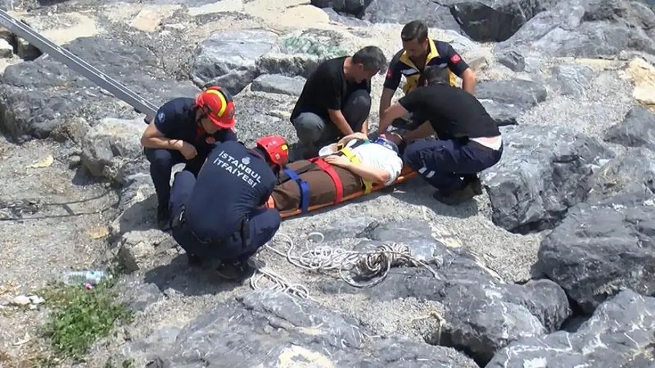 Kazlıçeşme Sahil Parkı'nda yürüyen bir kadın, dengesini kaybederek kayalıklara düştü.