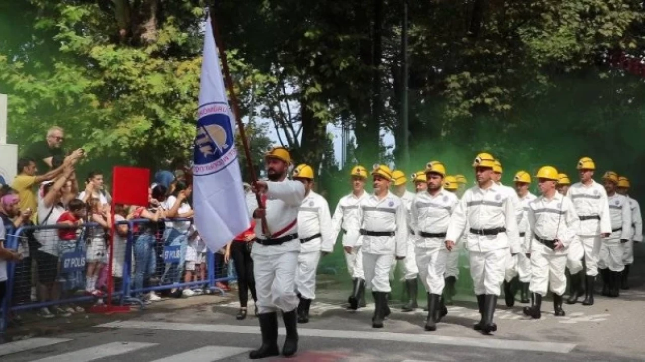Geçit törenine ise resmi ekiplerin yanı sıra Türkiye Taşkömürü Kurumu’nda çalışan maden işçileri katıldı.
