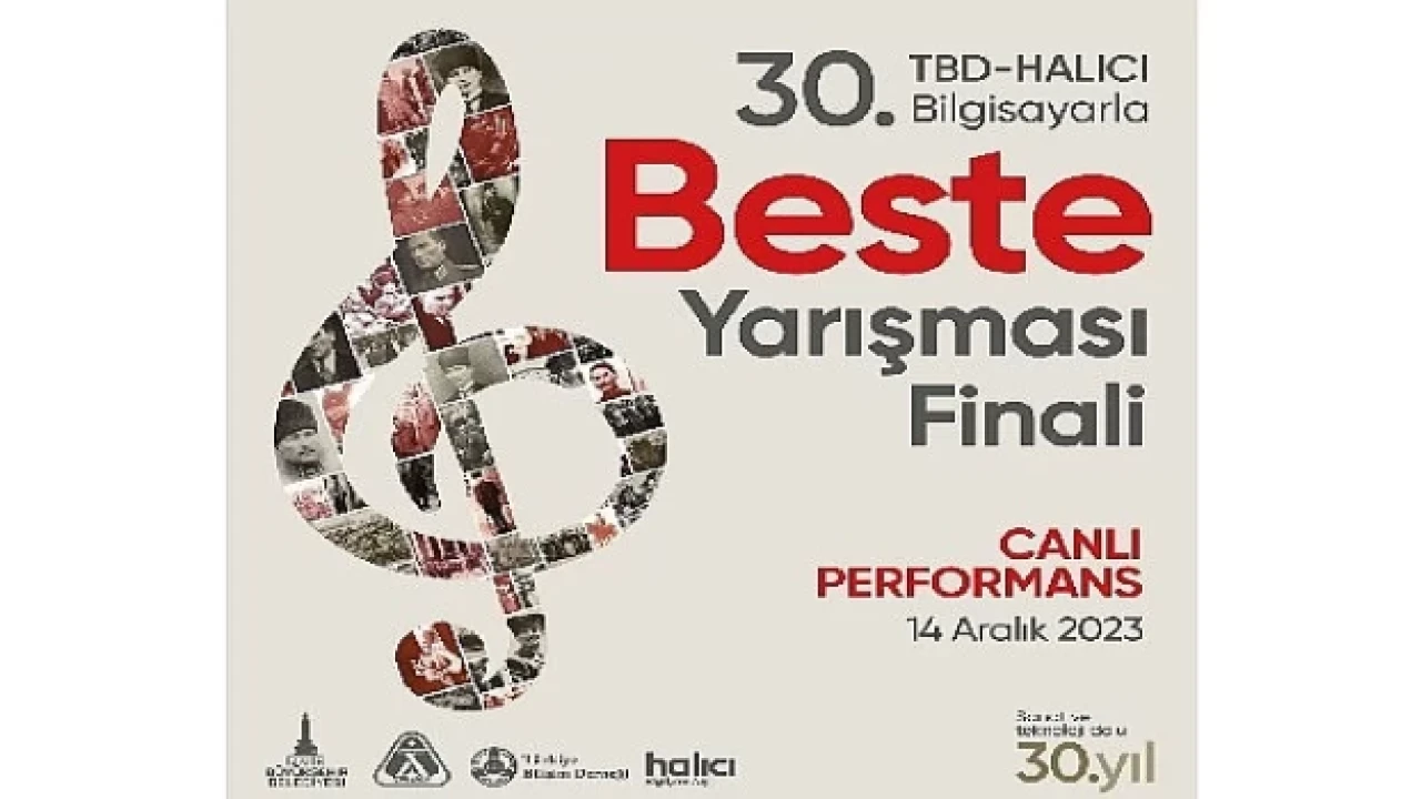 İzmir Büyükşehir Belediyesi, İZELMAN, Türkiye Bilişim Derneği, HALICI Bilgi İşlem işbirliğiyle düzenlenen Cumhuriyet’in 100’üncü yılı temalı 30. TBD-Halıcı Bilgisayarla Beste Yarışması’nın kazananları 14 Aralık Perşembe saat 20.00’de Ahmed Adnan Saygun Sanat Merkezi’nde (AASSM) düzenlenen törenle sahiplerini bulacak. İzmir Büyükşehir Belediye Başkanı Tunç Soyer’in de katılımıyla düzenlenecek ödül töreninde televizyon yapımcısı ve yönetmen İzzet Öz’ün sunumuyla finale kalan 10 eser dinlenecek ve 10 eserin sahibine ödülleri verilecek.