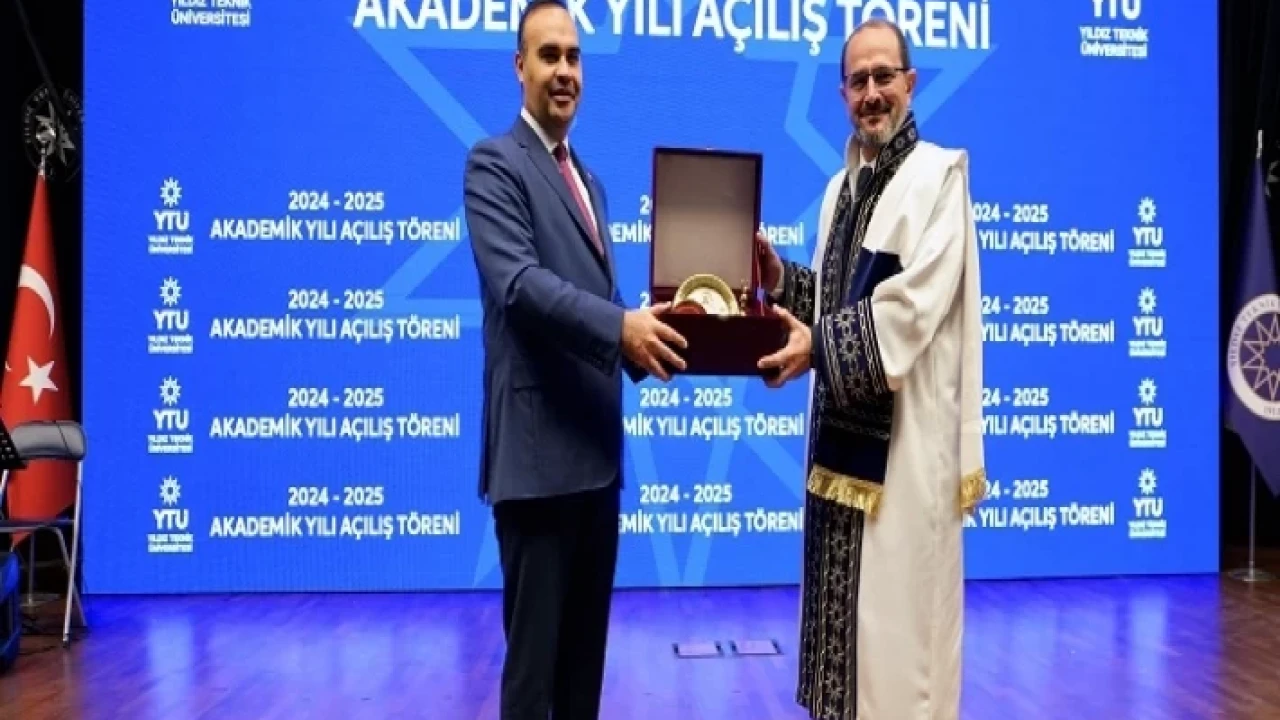 İSTANBUL (İGFA) - Sanayi ve Teknoloji Bakanı Mehmet Fatih Kacır, Yıldız Teknik Üniversitesi Davutpaşa Kampüsü Kongre Merkezi’nde düzenlenen 2024-2025 Akademik Yılı Açılış Törenine katılarak ilk dersi verdi. Törene Esenler Kaymakamı Süleyman Özçakıcı, Esenler Belediye Başkanı Mehmet Tevfik Göksu, Esenler İlçe Milli Eğitim Müdürü Feyzullah Sert ile Yıldız Teknik Üniversitesi Rektörü Prof. Dr. Eyüp Debik, rektör yardımcıları, dekan ve bölüm başkanları, öğretim üyeleri ve öğrenciler katıldı.