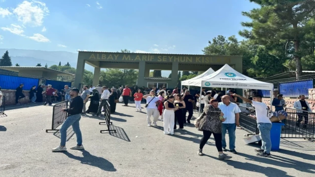 MANİSA (İGFA) - Manisa’da acemilik görevlerini tamamlayan acemi askerler için yemin töreni düzenlendi. Manisa Büyükşehir Belediyesi Sosyal Hizmetler Dairesi Başkanlığı ekipleri, acemilik görevlerini tamamlayan acemi erlere ve ailelerine ikramda bulundu. M. Arif Seyhun Kışlası’nda farklı illerden Manisa’ya gelen vatan evlatlarına ve ailelerine çay, kahve, su ve limonata ikram edildi. Havanın sıcaklığından bunalan aileler ikramlardan memnuniyet duydu. Yapılan yemin töreninin ardından askerler aileleriyle birlikte dağıtım yerlerine hareket etti.