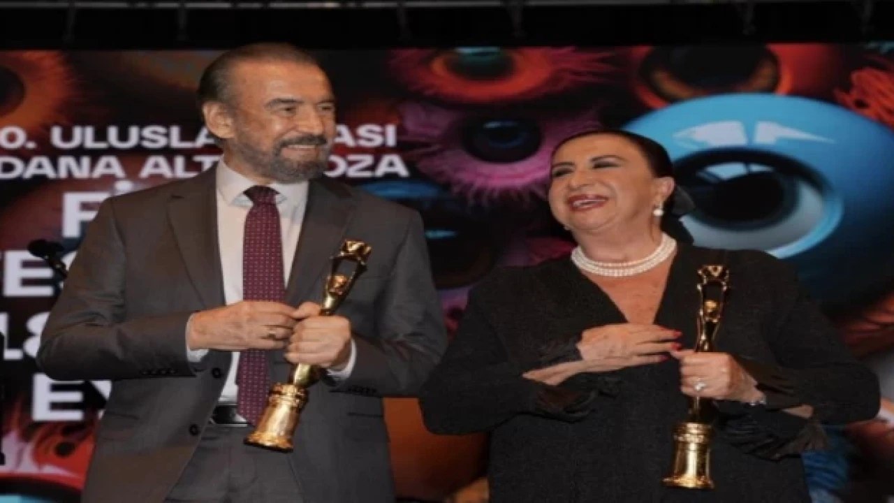 ADANA (İGFA) - Adana Büyükşehir Belediye Başkanı Zeydan Karalar başkanlığında, Türkiye Cumhuriyeti’nin 100. Yılında 30. kez sinemaseverlerle buluşan Uluslararası Adana Altın Koza Film Festivali’nde ‘’Onur Ödülleri’’ sahiplerini buldu. Gani Müjde’nin sunumuyla gerçekleşen törende ‘‘Onur Ödülleri’’ Perran Kutman ve Cihan Ünal’a takdim edildi.