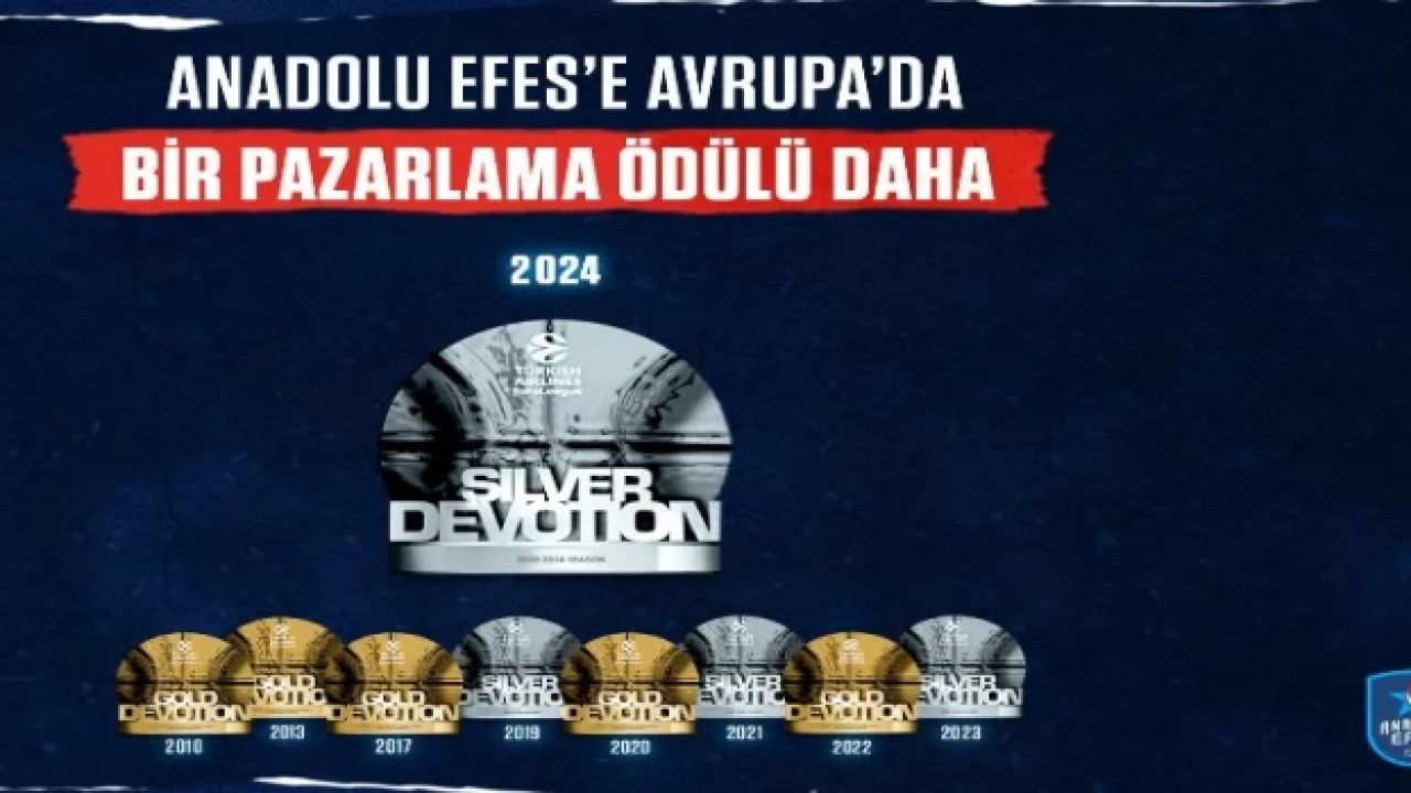 EuroLeague ve EuroCup takımlarının katılımı ve oylarıyla belirlenen Devotion Pazarlama Ödülleri’nde 2010, 2013, 2017, 2020 ve 2022 yıllarında Altın Ödül kazanan Anadolu Efes, 2019, 2021, 2023 yıllarından sonra 2024’te de dördüncü kez Gümüş Ödül’ün sahibi oldu. Anadolu Efes son başarısıyla, EuroLeague Devotion Pazarlama Ödülleri’nde toplamda 9. ödülünü kazanmış oldu.