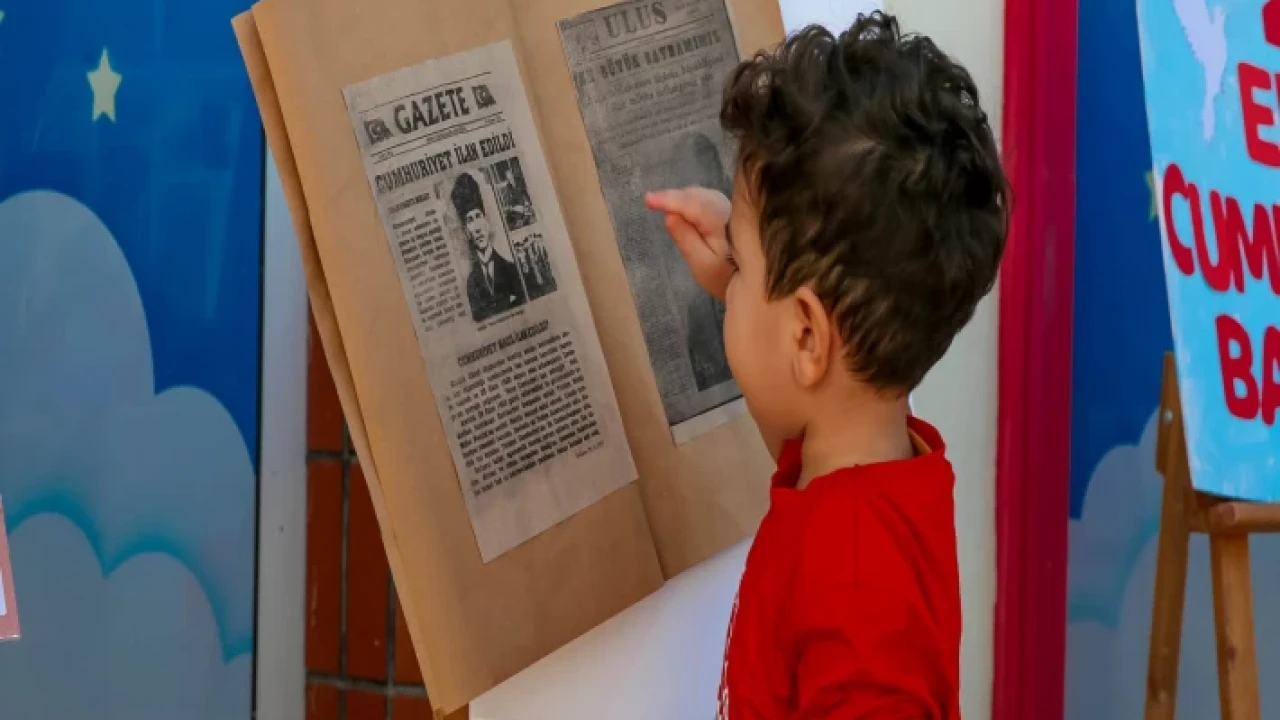 Ankara'da Keçiören Belediyesi Gül Kreş Adası öğrencileri tarafından 29 Ekim Cumhuriyet Bayramı’na özel açılan sergiyle sınıflar ve kreş bahçesi kırmızı beyaza büründü.