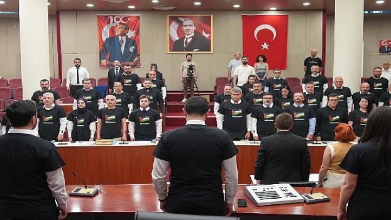 Belediye Meclisi Haziran ayı 1.Birleşiminde bütün meclis üyeleri parti ve grup gözetmeksizin toplantıya siyah üzerinde Filistin bayrağı bulunan ve #AllEyesOnRafah yazan tişört ile katıldı.