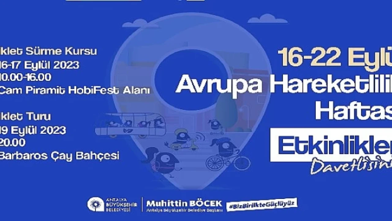 Avrupa Komisyonu'nun sürdürülebilir kentsel hareketlilik konusundaki bilinçlendirme girişimlerinden olan “Avrupa Hareketlilik Haftası” tüm dünyada ve Türkiye’de olduğu gibi Antalya’da da 16-22 Eylül tarihleri arsında kutlanacak. Antalya Büyükşehir Belediyesi tarafından gerçekleştirilecek kutlama programında bisiklet turu ve arabasız gün etkinliği düzenlenecek.