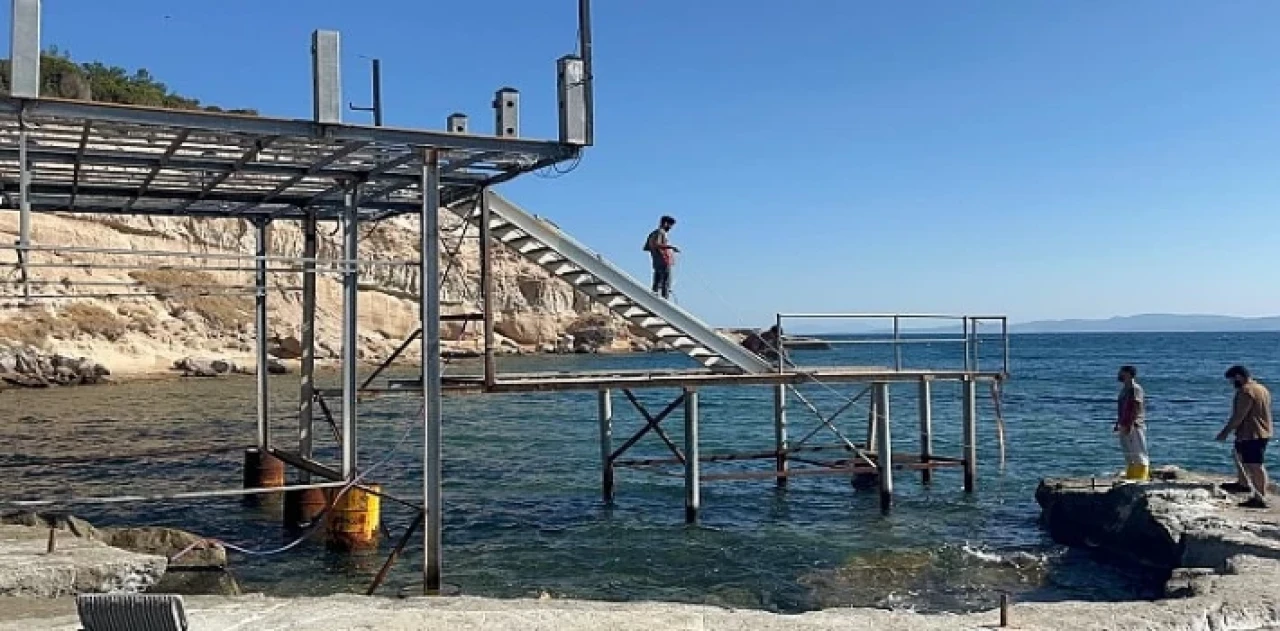 İzmir Büyükşehir Belediyesi, Mordoğan'daki Ayıbalığı Koyu’nda Akdeniz foklarının yaşam ve üreme alanlarına izinsiz olarak kurulan demir iskelenin kaldırılmasını sağladı. Sivil toplum kuruluşlarının şikayetleri üzerine harekete geçen ve süreci titizlikle takip eden Büyükşehir Belediyesi’nin başlattığı yasal ve idari süreç sonucunda iskelenin sökümü başladı.