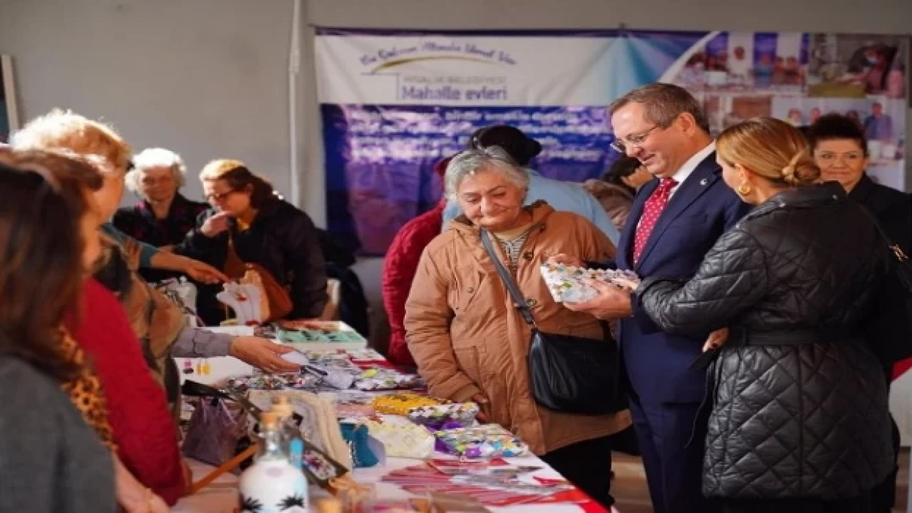 Balıkesir Ayvalık Belediyesi Mahalleevleri'nde kadınların ürettiği el emeği göz nuru eşyalar yılbaşı pazarında satışa çıktı.