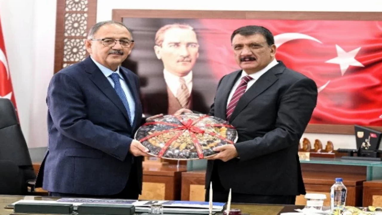 Daha sonra Büyükşehir Belediye Başkanı Selahattin Gürkan, Çevre, Şehircilik ve İklim Değişikliği Bakanı Mehmet Özhaseki’ye ziyaretin anısına çeşitli hediyeler verdi.