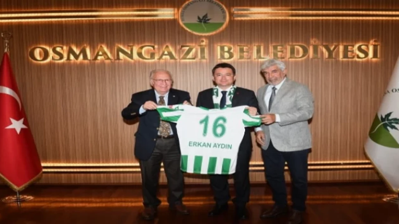 Bursaspor Başkanı Sinan Bür ve Yönetim Kurulu Üyeleri, Osmangazi Belediye Başkanı Erkan Aydın’ı ziyaret etti. Başkan Aydın, Bursaspor’u eski günlerine döndürmek için desteğe hazır olduklarını ifade etti.